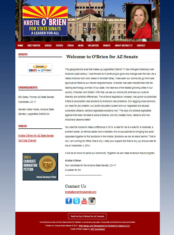Website for the 2014 Kristie O'Brien for Arizona State Senate campaign.